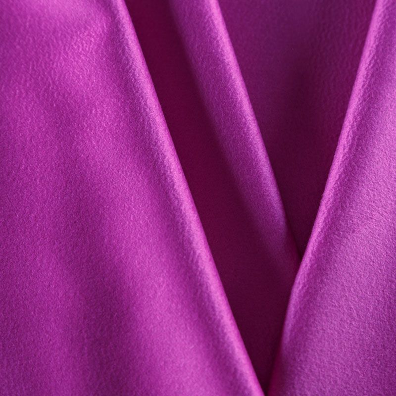 Итальянский пальтовый кашемир ярко-розового оттенка. Ткань мягкая, пластичная, приятная на ощупь, гибкая, средней толщины, при этом высокой плотности. Поверхность имеет короткий ворс с характерной волной. Подойдет для пошива пальто, куртки, жакета, парки, кейпа, жакета или пончо.