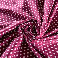 Плательно-блузочная ткань из натурального хлопка с принтом горох. Ткань легкая, тонкая, хорошо "дышит", мягкая, не прозрачная, немного тянется за счет эластана в составе. Подойдет для пошива летнего платья, летящей юбки, блузы, сарафана, комбинезона или рубашки.
