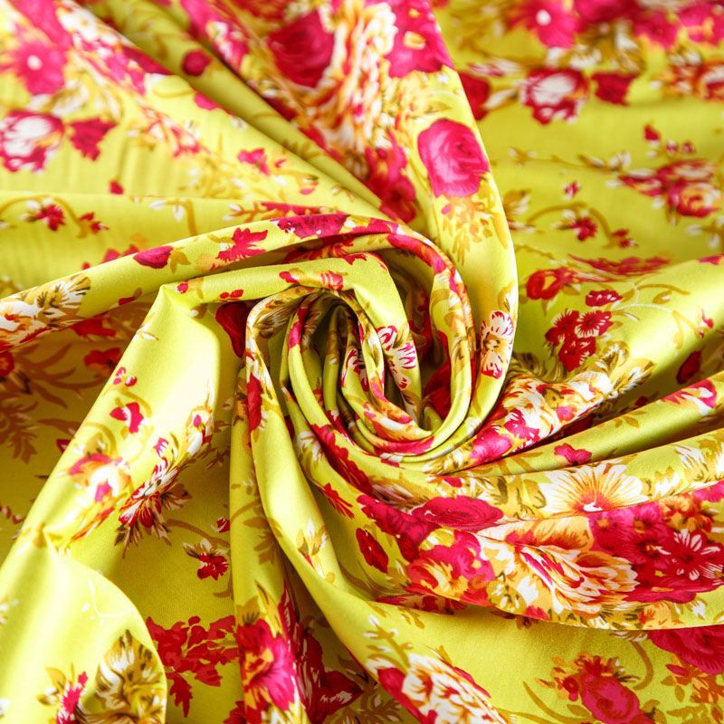 Плательно-рубашечная ткань из натурального хлопка с ярким цветочным принтом. Ткань легкая, тонкая, хорошо "дышит", слегка держит форму, не сухая, не прозрачная. Подойдет для пошива летнего платья, летящей юбки, блузы, сарафана, комбинезона или рубашки, а также для домашней одежды.