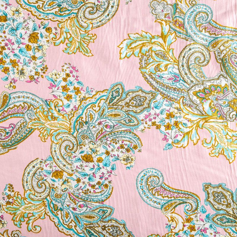 Плательно-рубашечная ткань из натурального хлопка с принтом пейсли. Ткань легкая, тонкая, хорошо "дышит", слегка держит форму, не сухая, не прозрачная. Подойдет для пошива летнего платья, летящей юбки, блузы, сарафана, комбинезона или рубашки, а также для домашней одежды.