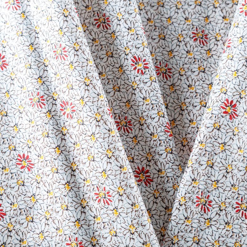 Натуральный хлопок с мелкоцветным принтом. Ткань легкая, тонкая, хорошо "дышит", мягкая, слегка прозрачная, тянется за счет эластана в составе. Подойдет для пошива летнего платья, домашней одежды, детских платьев, песочников, юбки, сарафана или рубашки, а также для для пошива постельных принадлежностей, подушек, покрывал, скрапбукинга, корзин и других видов творчества.