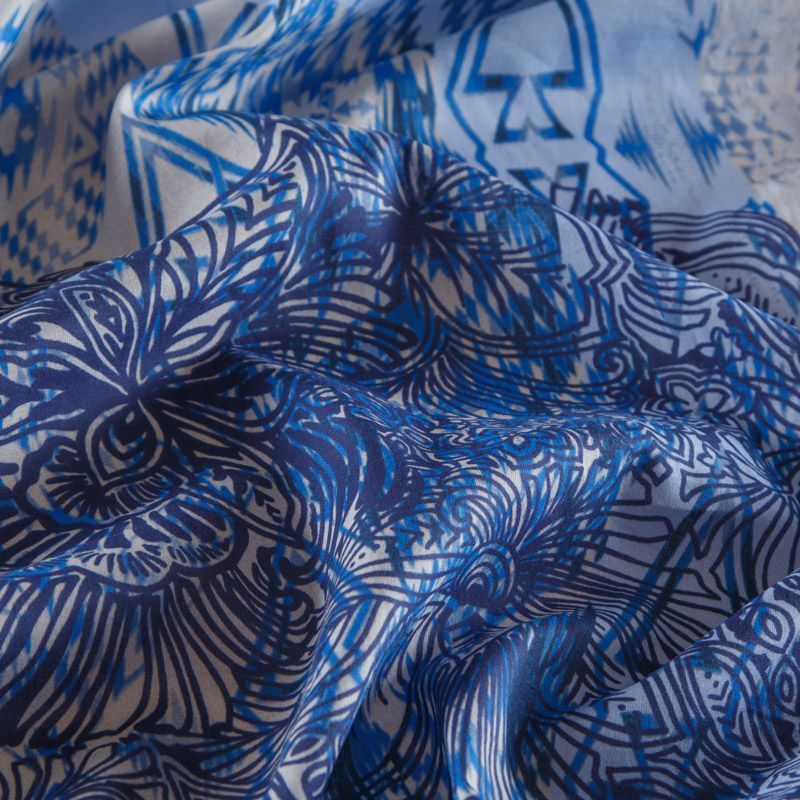 Тонкая и воздушная плательно-блузочная ткань Marni из 100% хлопка с этническим принтом. Поверхность матовая. Ткань слегка просвечивает, очень мягкая на ощупь, полотняного плетения, летящая, пластичная, великолепно драпируется, подвержена характерному для хлопка сминанию.