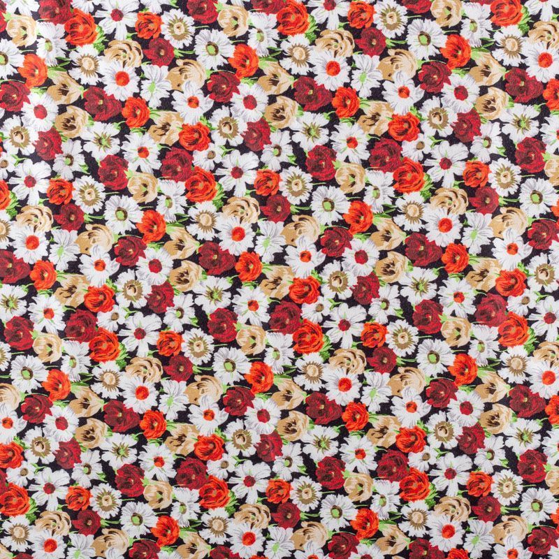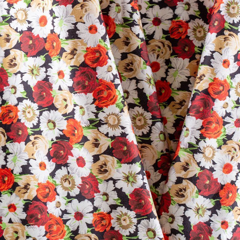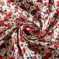 Плательно-рубашечный натуральный хлопок от французского дизайнера с цветочным узором в красно-белых тонах на черном фоне. Ткань имеет плотное переплетение, матовую гладкую поверхность, хорошо держит форму, не прозрачная. Подойдет для пошива рубашек, платья-рубашки, юбки, сарафана, туники, домашней одежды.