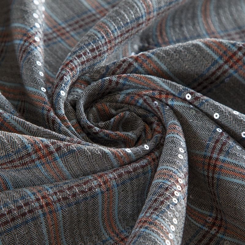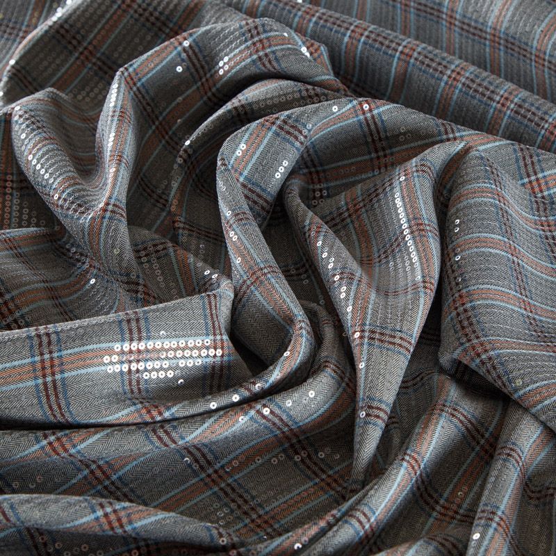 Хлопок с пайетками 063-16329 серый принтованный в Якутске