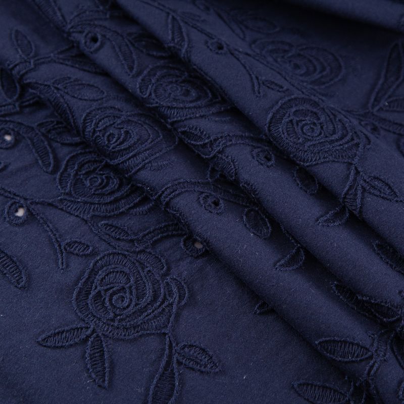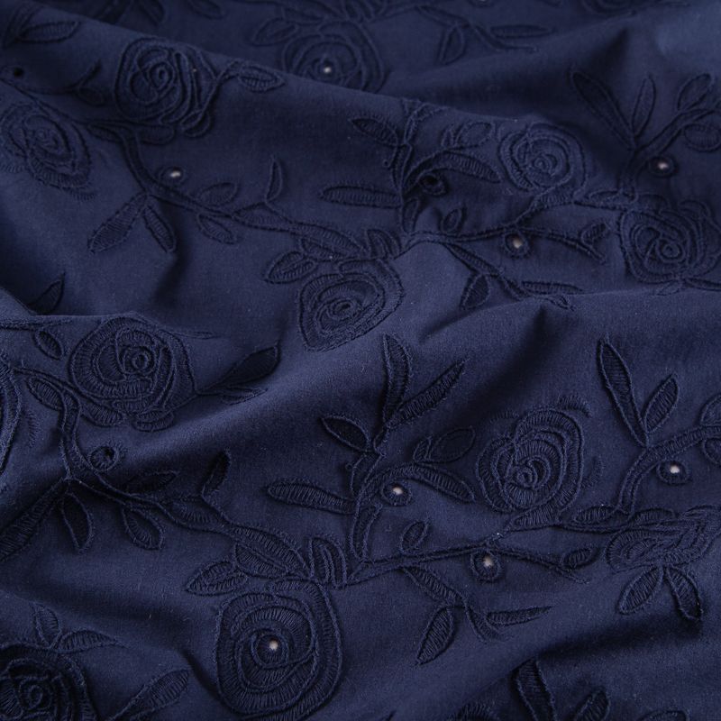 Хлопок с вышивкой 067-20043 темно-синий в Якутске