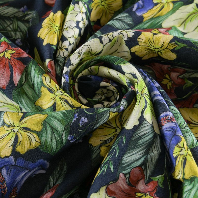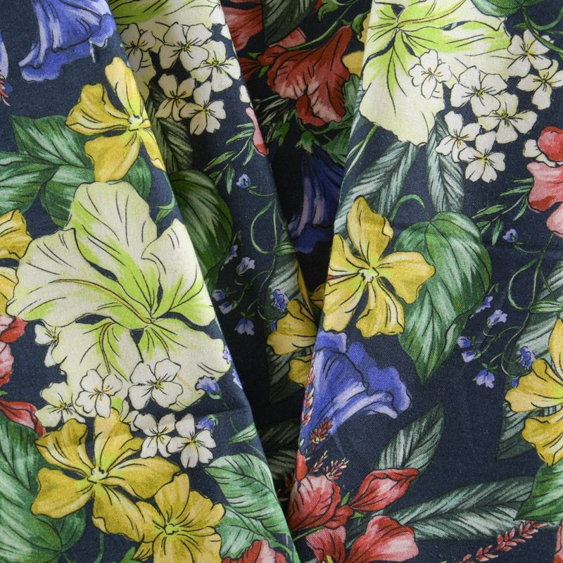 Хлопок стрейч 063-12073 темно-синий принтованный в Якутске