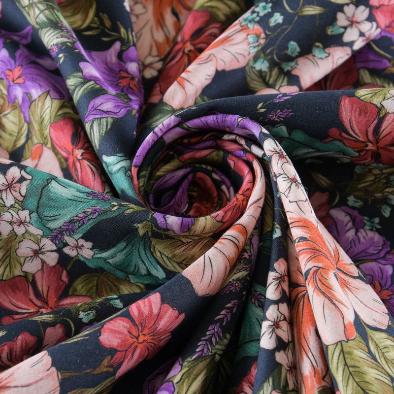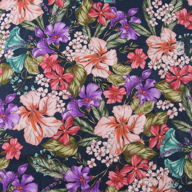 Хлопок стрейч 063-12074 темно-синий принтованный в Якутске