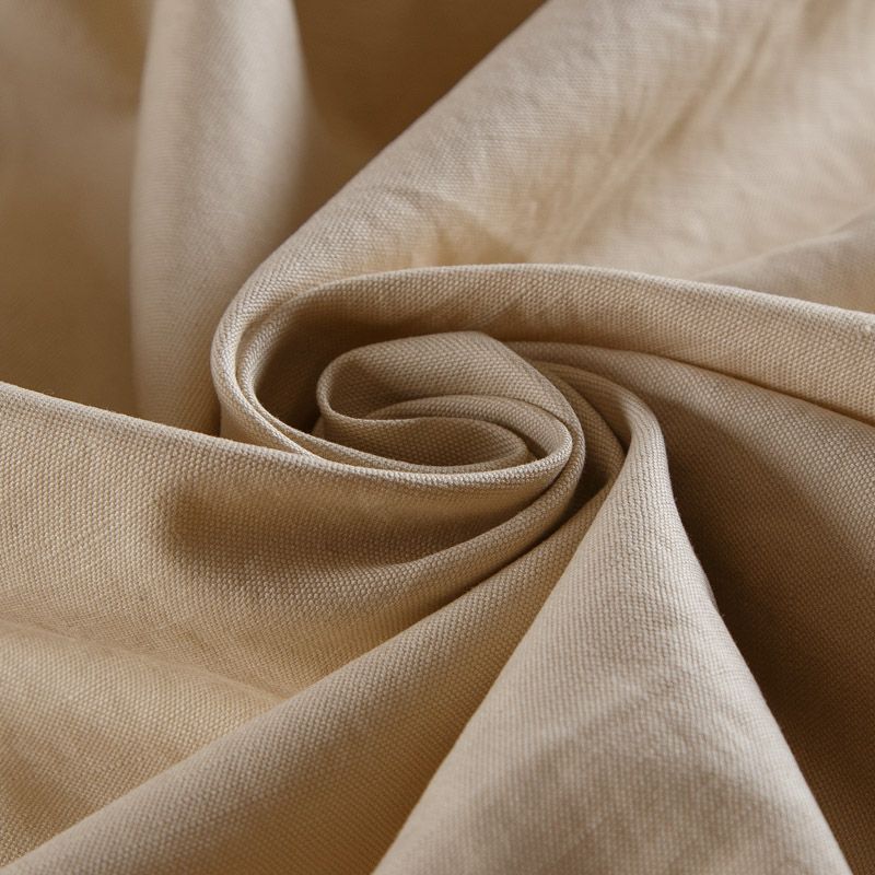 Итальянский плотный хлопок полотняного плетения в бежевом оттенке. Ткань имеет фактурную поверхность, хорошо держит форму, не тянется. Идеальна для пошива тренчей, ветровок, курток, парки, плаща.