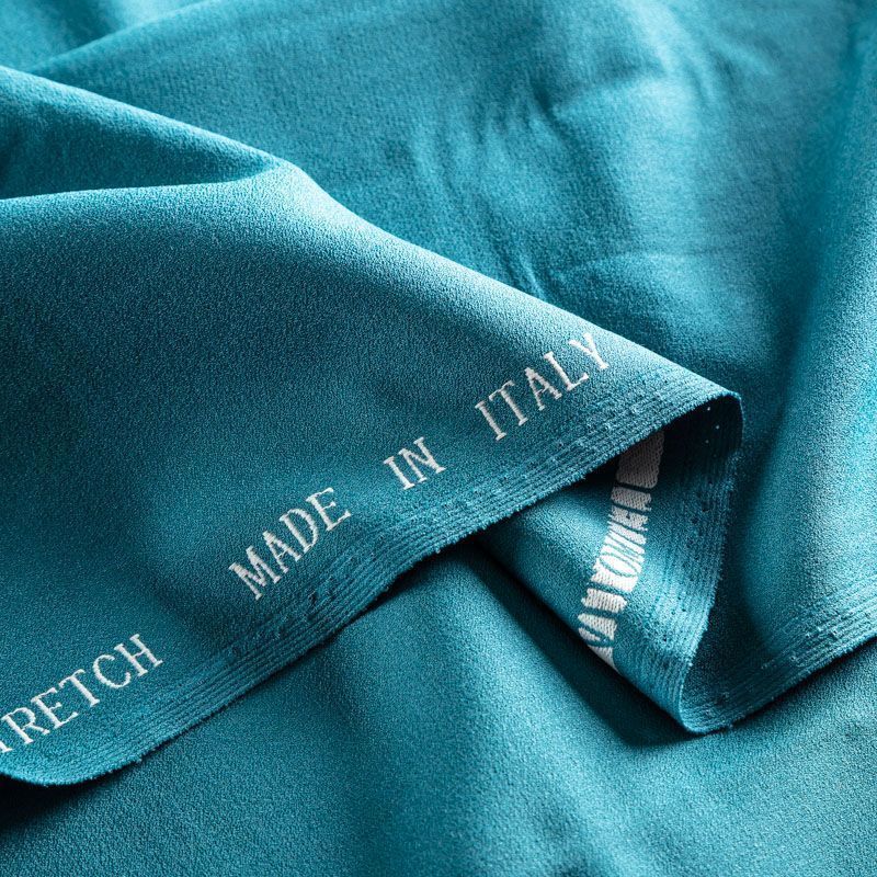 Итальянский вискозный двойной креп невероятно красивый, нежный и пластичный. Ткань отлично драпируется, хорошо тянется, практически не мнется, лицевая поверхность матовая и зернистая. Идеален для пошива комбинезона, платьев, костюмов, свободных брюк, юбки.