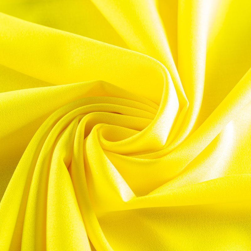 Итальянский шерстяной креп в красивом сочном желтом оттенке. Ткань мягкая, пластичная, образует мягкие фалды, слегка просвечивает, тянется за счет эластана в составе. Подойдет для пошива весенне-осеннего костюма, платья, комбинезона, юбки, брюк.