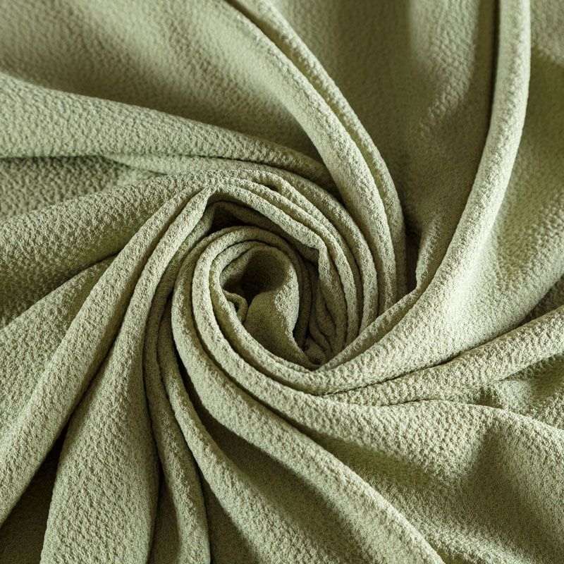 Итальянский фактурный креп в сложном фисташковом оттенке. Ткань мягкая, пластичная, образует мягкие фалды, не просвечивает, тянется за счет эластана в составе. Подойдет для пошива весенне-осеннего костюма, платья, комбинезона, юбки, брюк