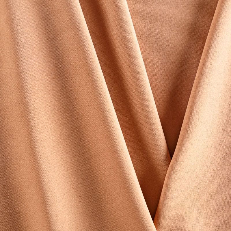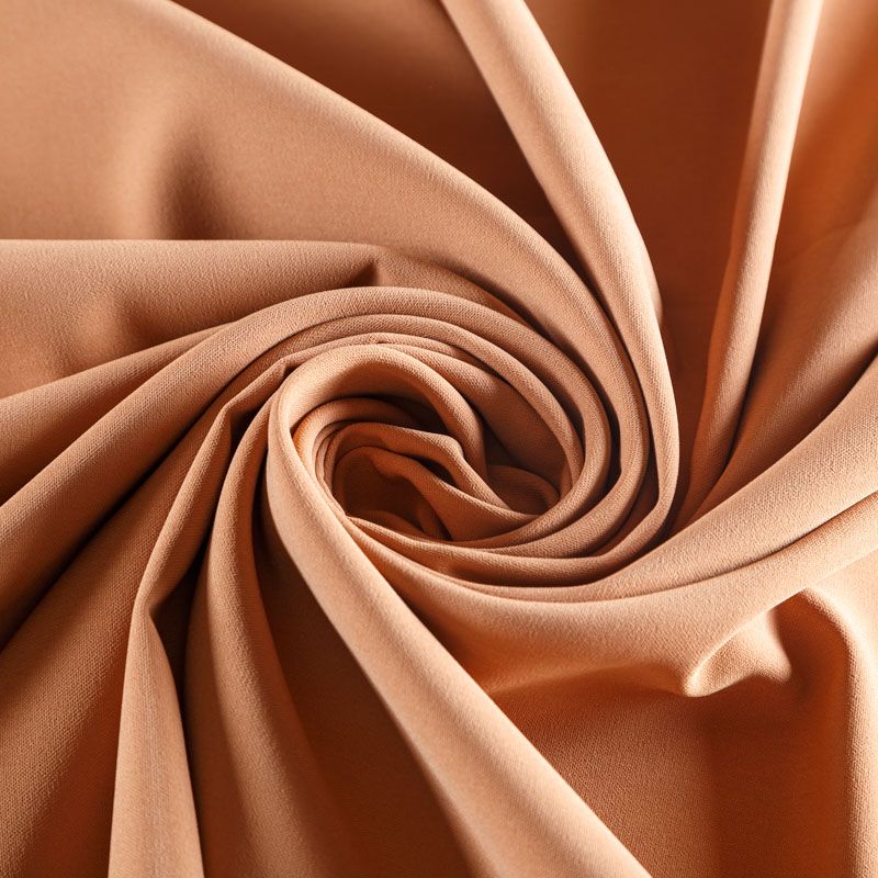 Плотная ткань с гладкокрашеной отделкой. Поверхность полотна матовая, упругая, эластичная, с характерной шероховатой мелкозернистой фактурой. Ткань практически не мнется, отлично сохраняет форму изделия, достаточно мягкая и пластичная. Подойдет для пошива платья, свободных брюк, топа, лонгслива, комбинезона.