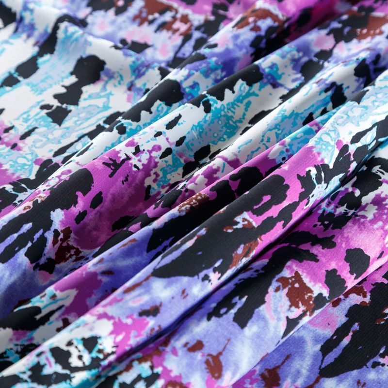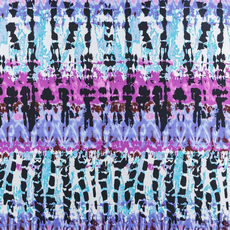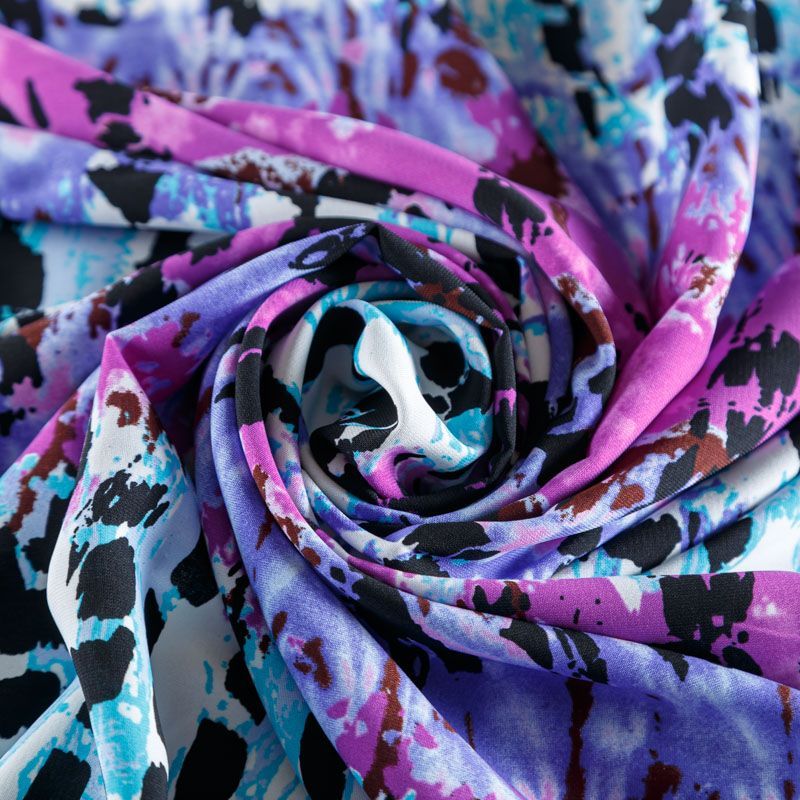 Плательный креп с абстрактным принтом. Ткань средней плотности, не толстая, пластичная, поверхность полотна матовая, с характерной мелкозернистой фактурой, прочная, практически не мнется, хорошо драпируется. Превосходно подойдет для пошива стильного костюма, юбки, платья, комбинезона, топа, брюк.