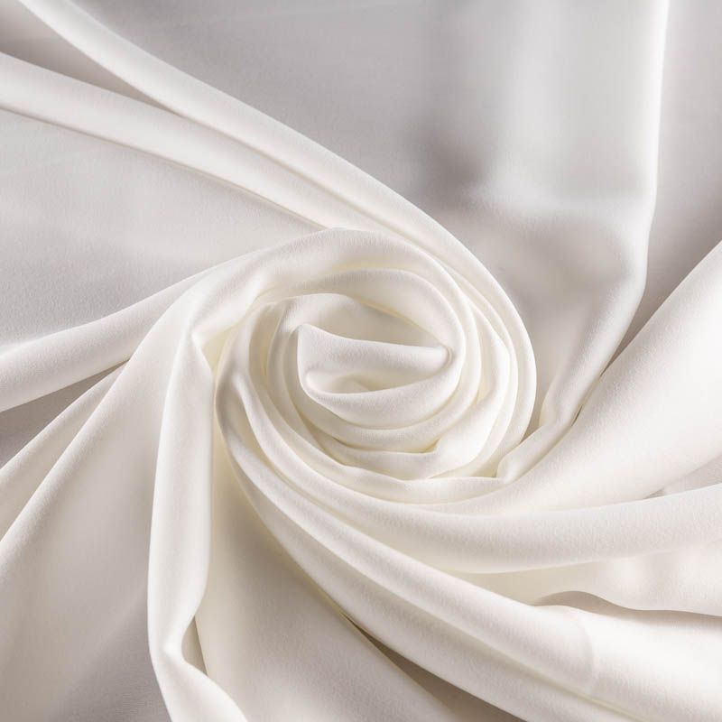 Шероховатая поверхность, упругий, практически не мнется, отлично сохраняет форму изделия, достаточно мягкий. Пластичный, хорошо тянется. Подойдет для пошива платья, свободных брюк, топа, лонгслива, комбинезона.