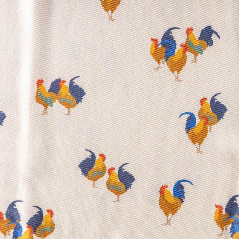 Плотный креп из вискозы с ярким принтом в виде забавных птиц-петушков на молочном фоне. Ткань хорошо держит форму, почти не мнется, имеет заметную фактуру пике и очень прочная - подходит для пошива эффектных бомберов, юбок, платьев в спортивном стиле или легких пальто.