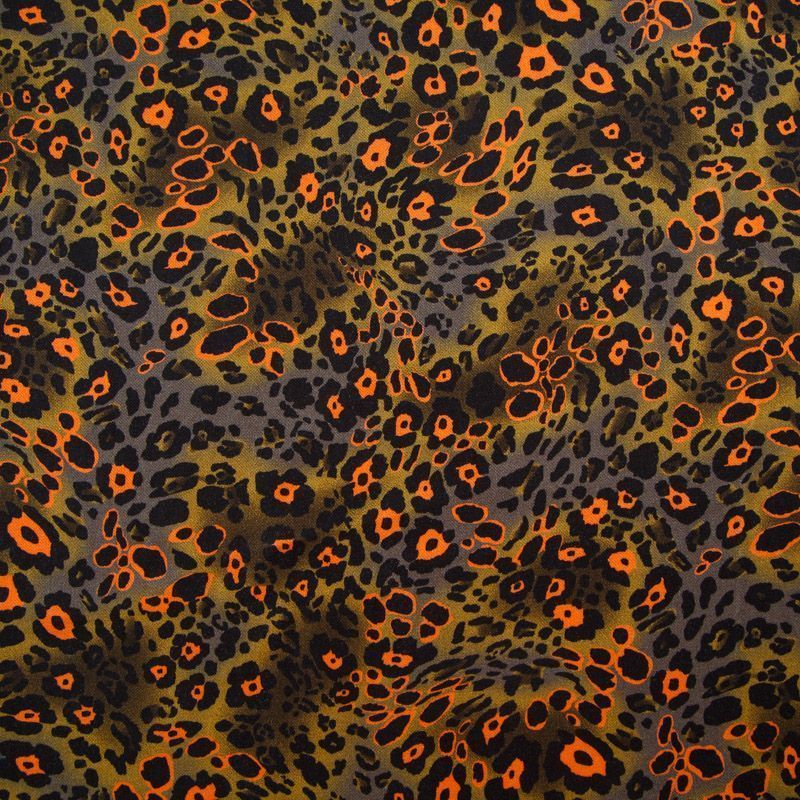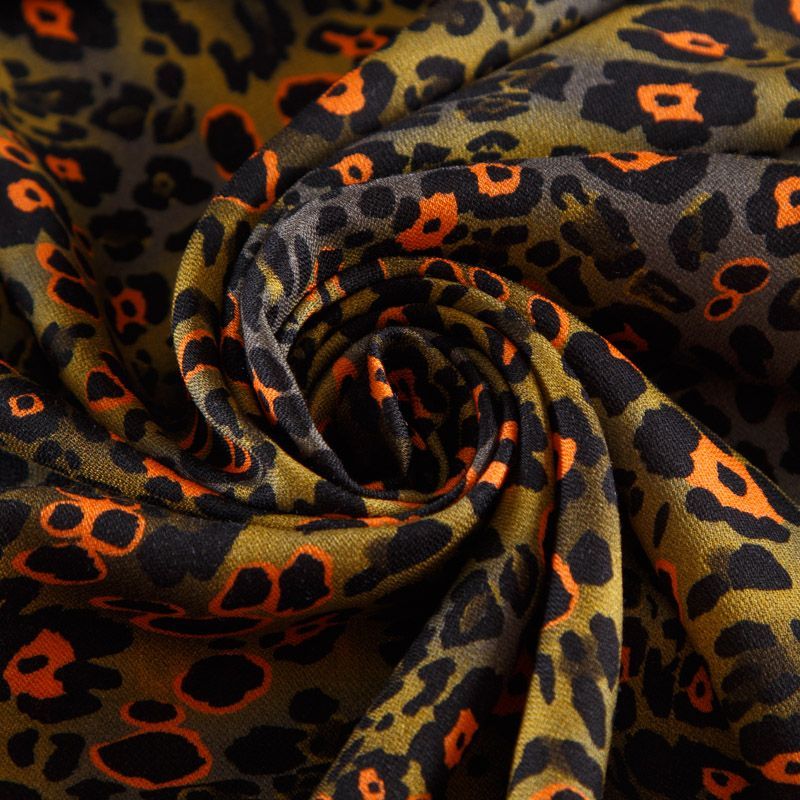 Итальянская натуральная вискозная ткань оливкового оттенка с анималистическим принтом. Ткань легкая, хорошо тянется, драпируется струящимися складками, приятная и комфортная в носке. Материал слегка мнется, имеет креповую фактуру. Идеально подходит для пошива платьев, юбок, блуз, комбинезонов, костюмов, туник, кардиганов.