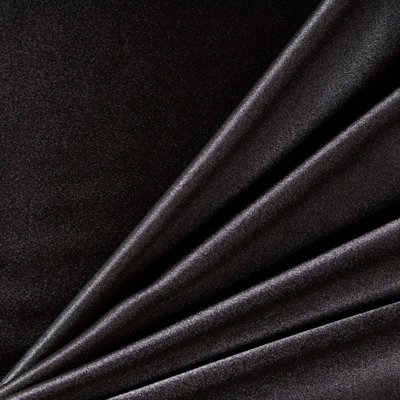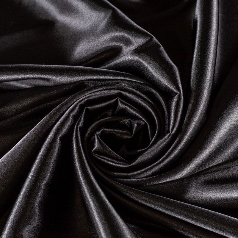 Ткань имеет сатиновую волнистую структуру с благородным блеском на лицевой стороне и матовую поверхность на оборотной стороне. Ткань средней плотности, шелковистая, очень благородно блестит, играет, струится. Драпируется в красивые фалды, тянется за счет эластана в составе, не просвечивает. Подойдет для пошива платьев, блузок, юбок, легких комбинезонов, костюмов.