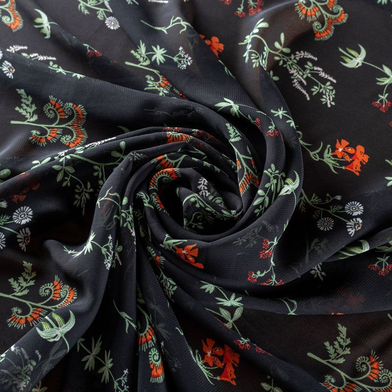 Креп-шифон 027-01276 черный принтованный в Якутске