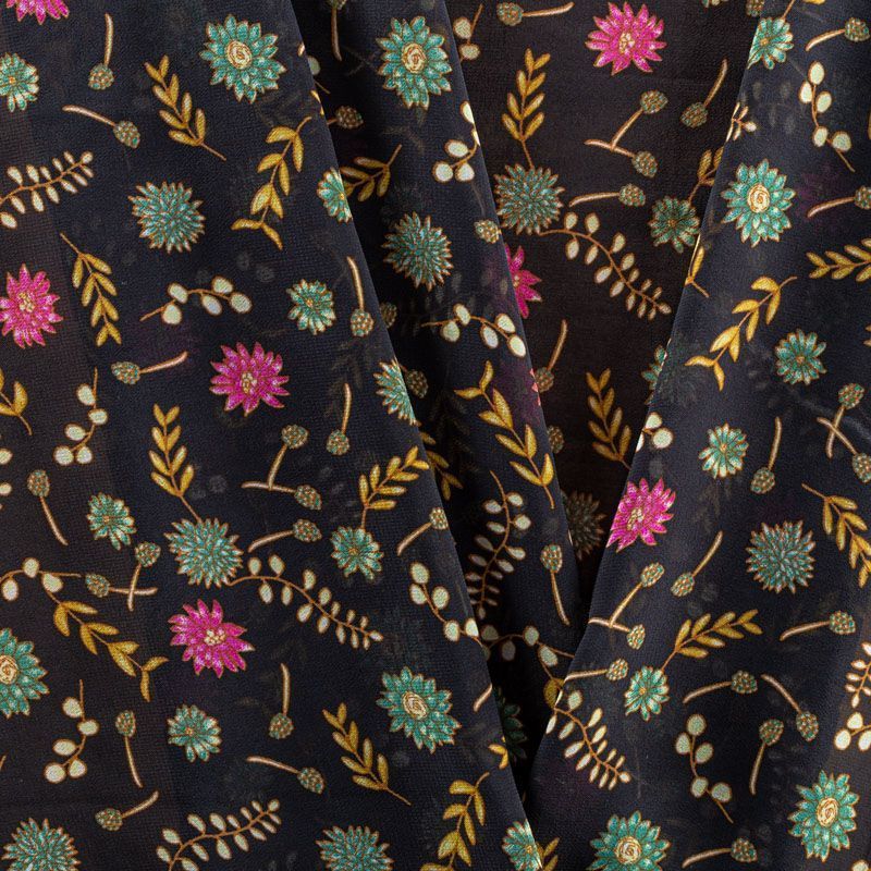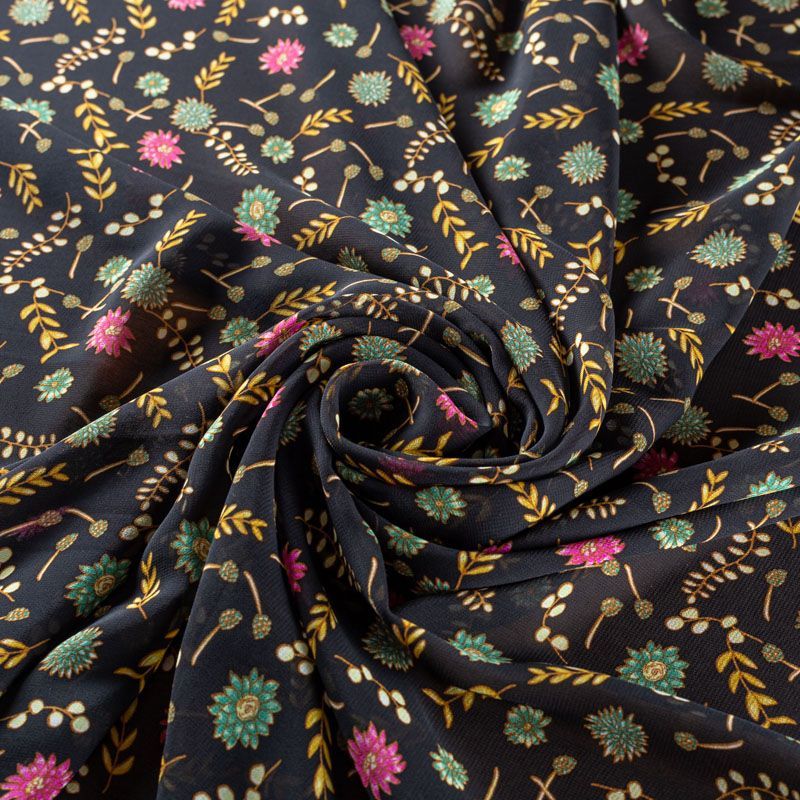 Креп-шифон 027-01282 темно-синий принтованный в Якутске
