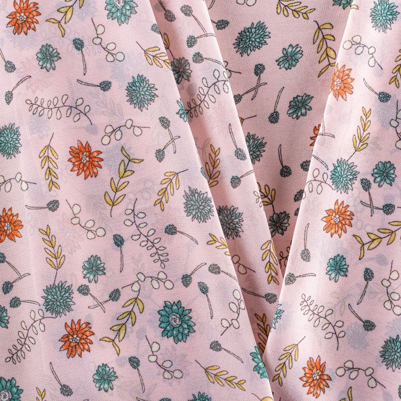 Креп-шифон 027-01284 пудрово-розовый принтованный