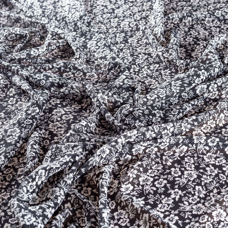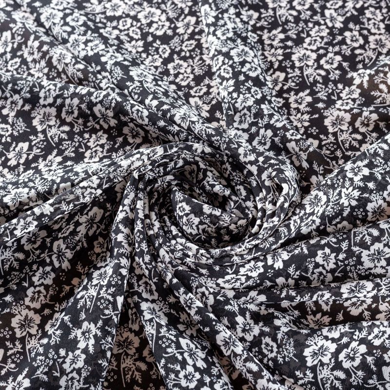 Креп-шифон 027-01437 черный принтованный в Якутске