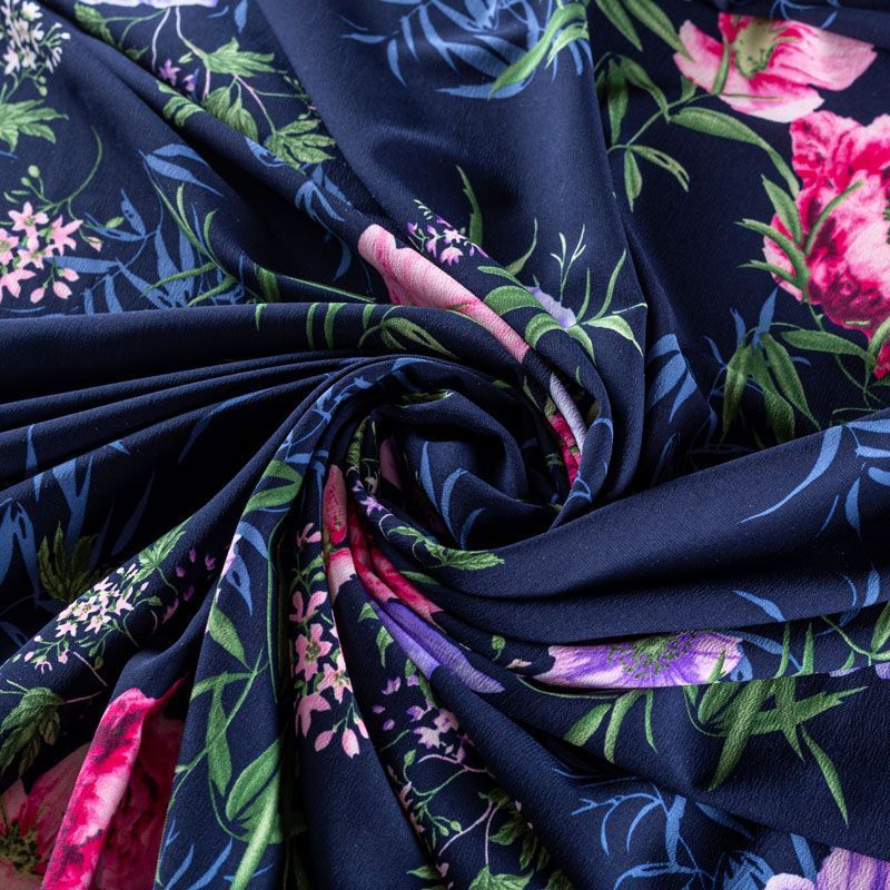 Креп-шифон 027-01569 темно-синий принтованный в Якутске