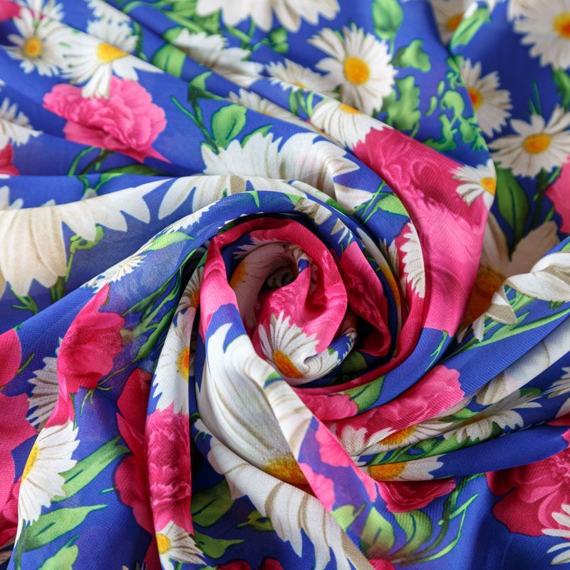 Креп-шифон 027-08233 синий принтованный в Якутске