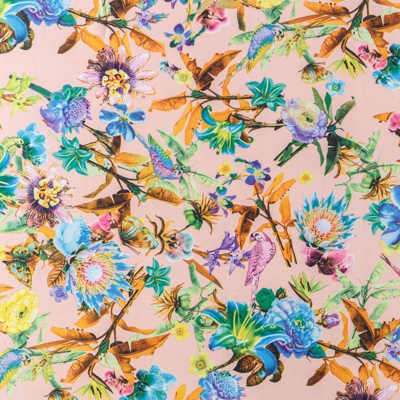 Креп-шифон 027-08350 разбеленный персиковый принтованный