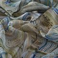 Итальянский вискозный креп-шифон с абстрактным принтом это тонкая, невероятно легкая полупрозрачная ткань полотняного переплетения с матовой поверхностью и характерной для крепа зернистой фактурой. Идеально подходит для пошива воздушных легких платьев, блуз, туник.
