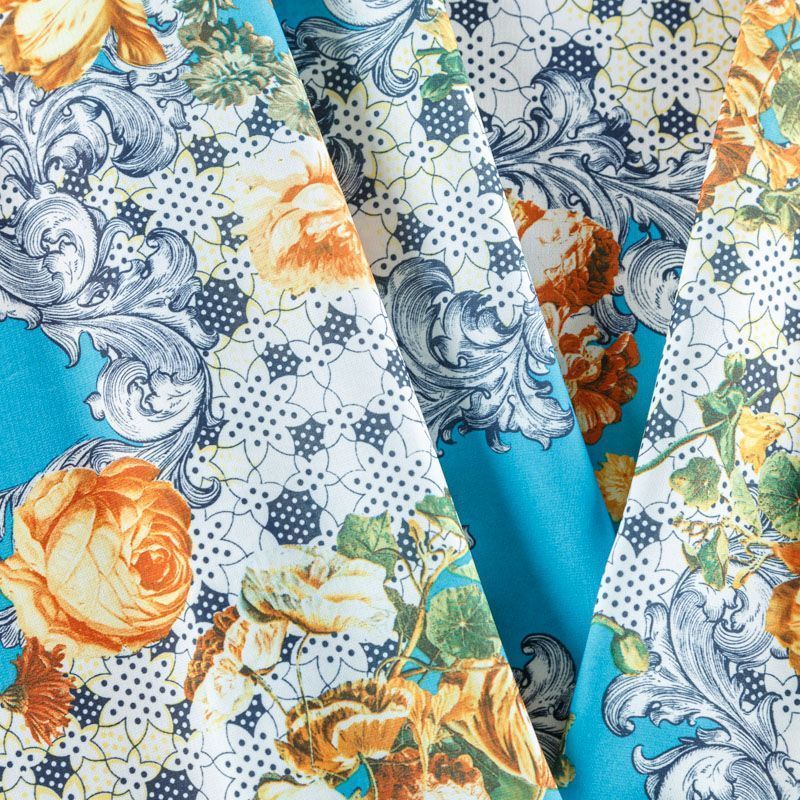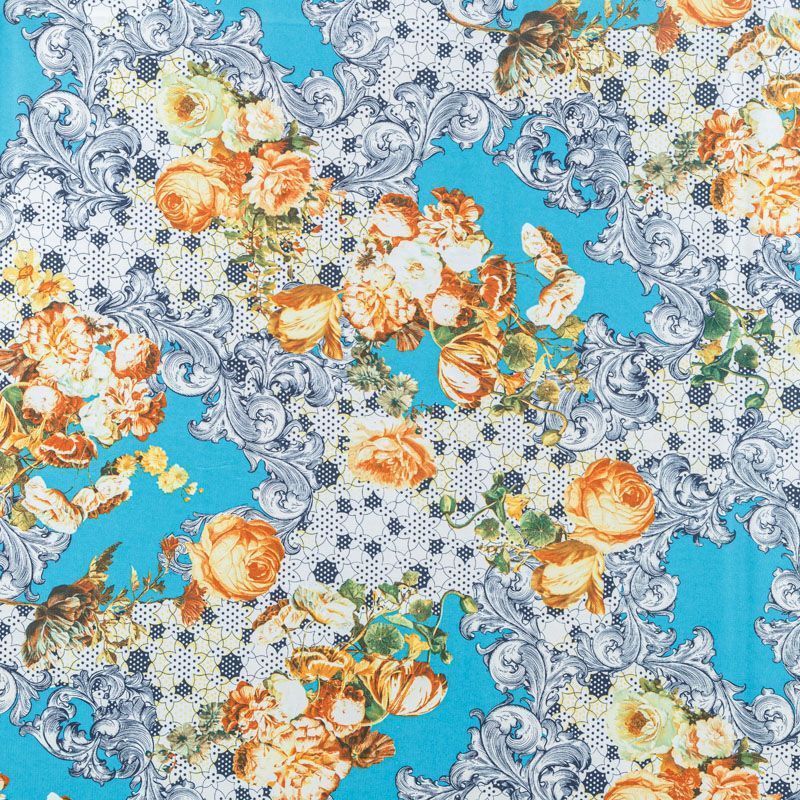 Креп-шифон К07-439 голубой принтованный в Якутске