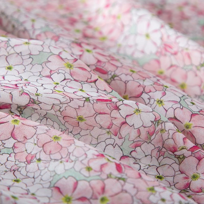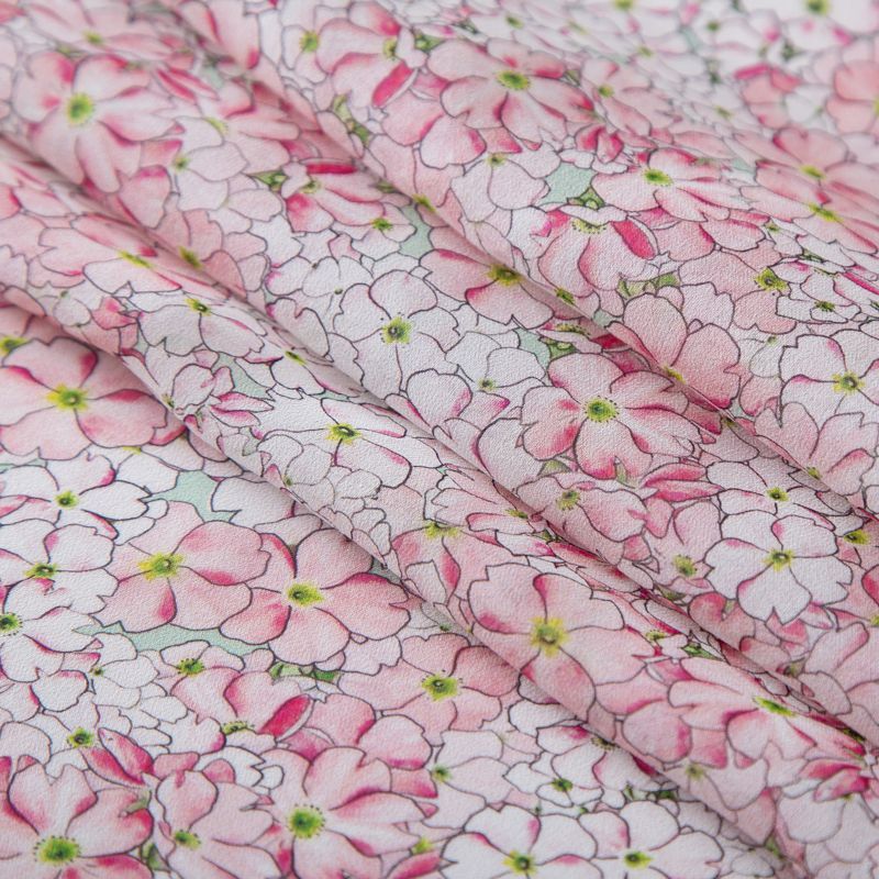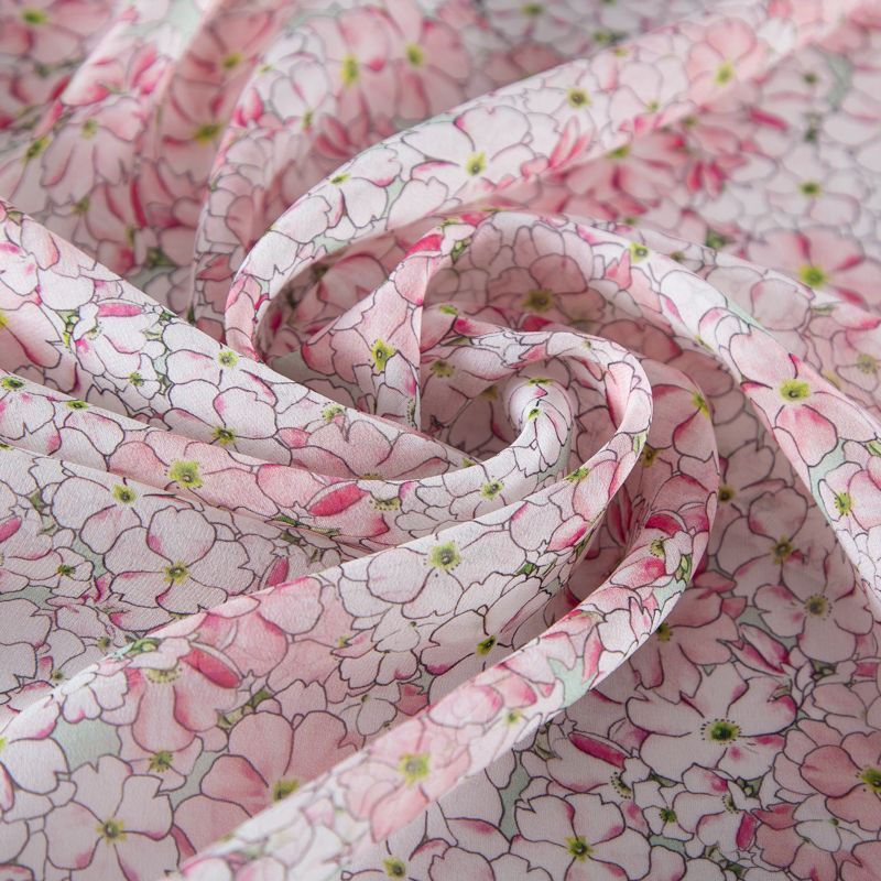 Креп-шифон шелковый 027-19849 нежно-розовый принтованный в Якутске