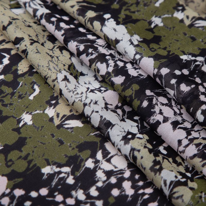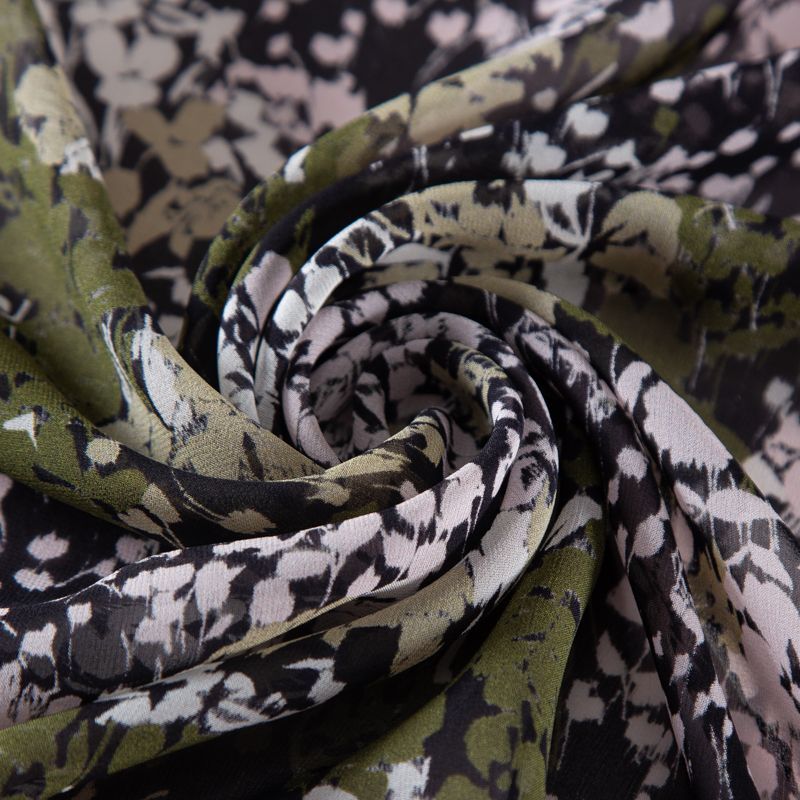 Креп-шифон шелковый 027-19852 хаки принтованный в Якутске