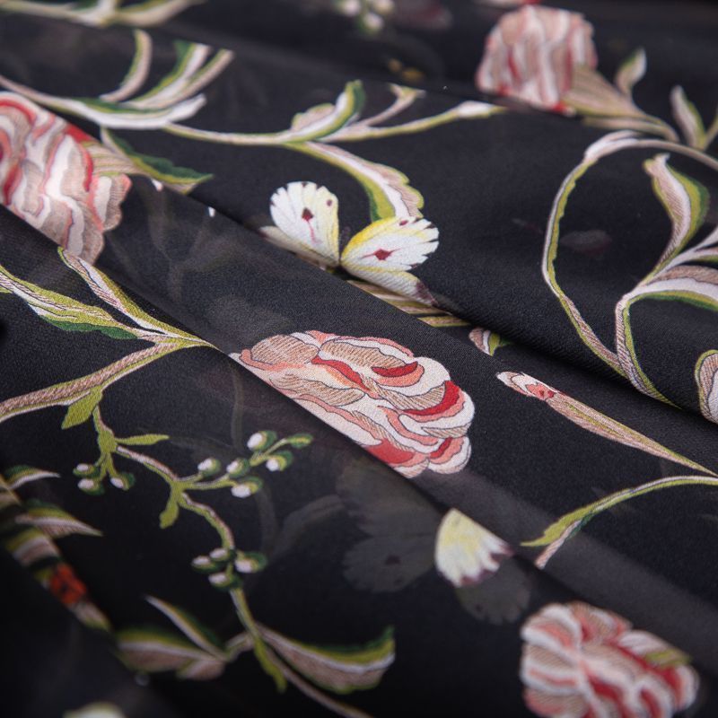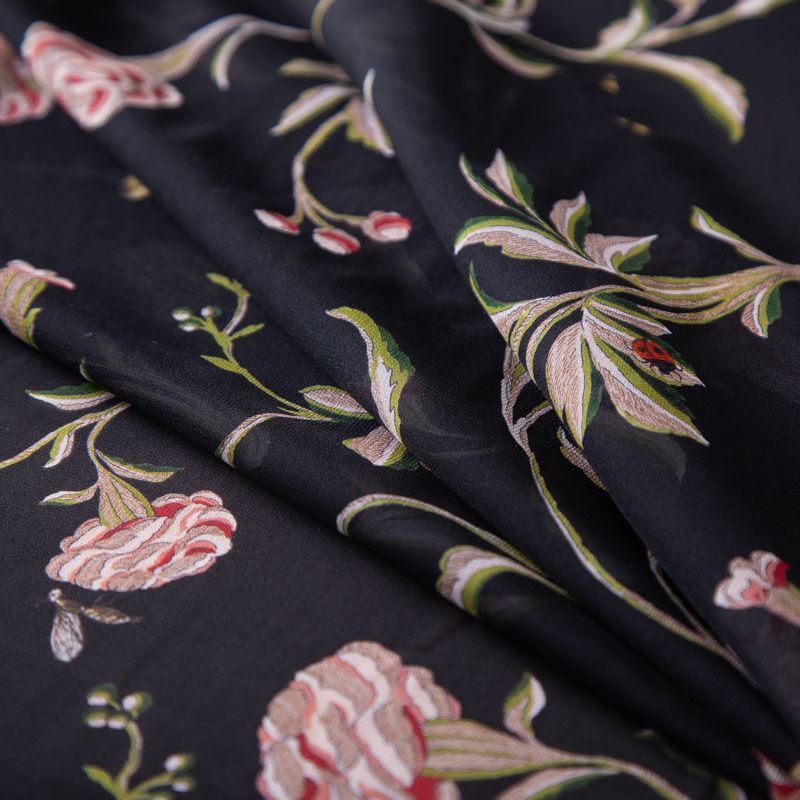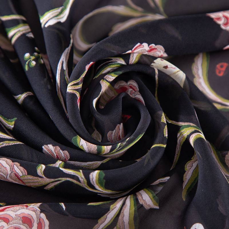 Креп-шифон шелковый 027-19853 черный принтованный в Якутске