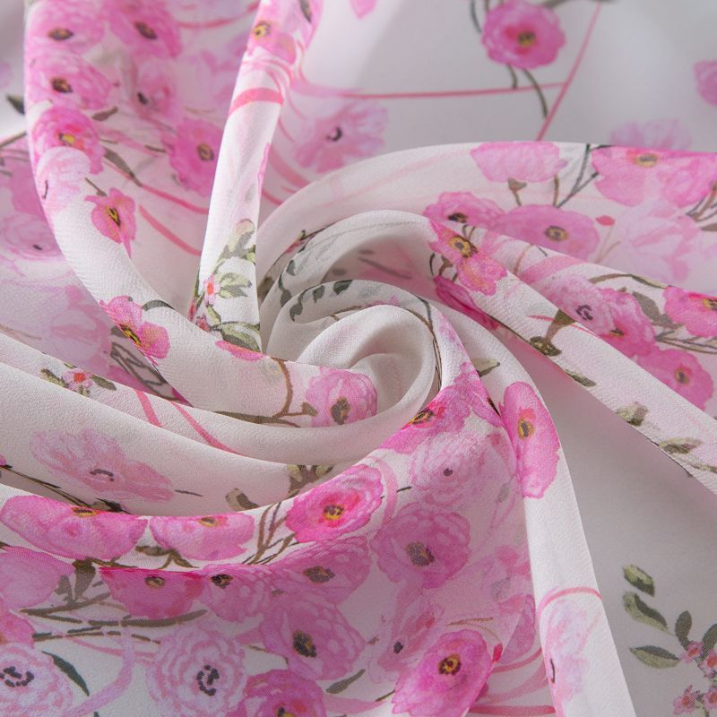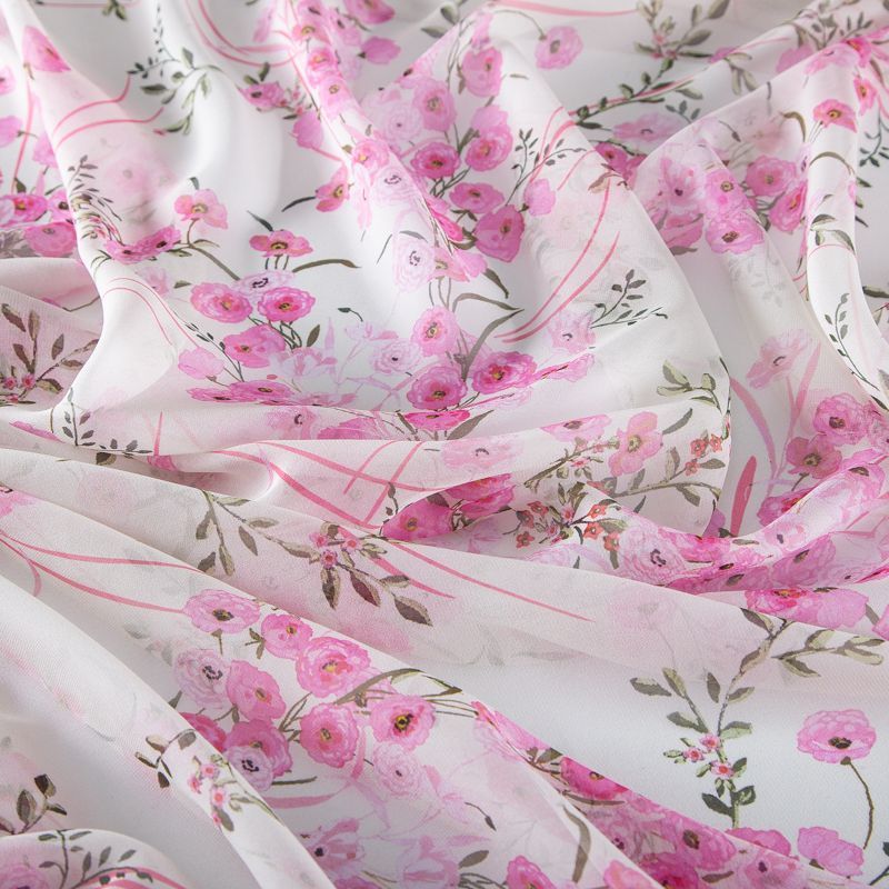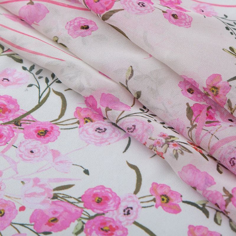 Креп-шифон шелковый 027-19855 белый принтованный в Якутске