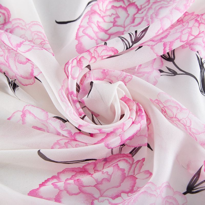 Креп-шифон шелковый 027-20200 молочный принтованный в Якутске