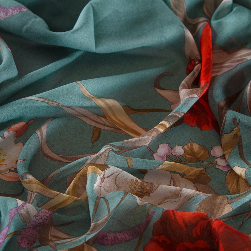 Креп-шифон вискозный 027-16407 серо-бирюзовый принтованный в Якутске