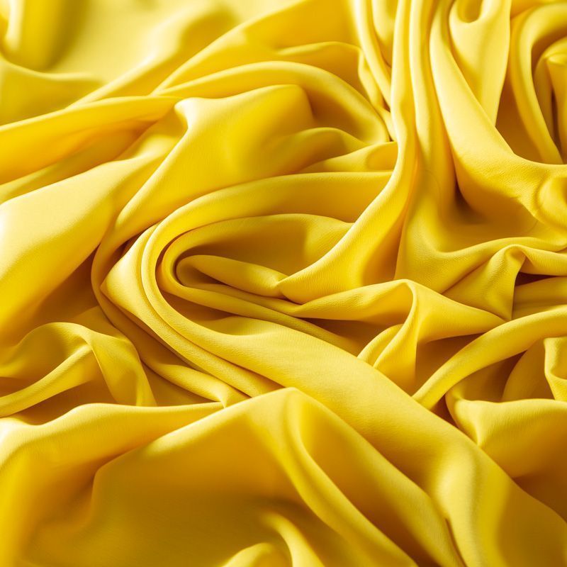 Итальянский натуральный шелковый крепдешин в желтом оттенке, фактурный, легкий и струящийся, слегка просвечивает, отлично драпируется. Идеально подойдет для пошива платьев и сарафанов расклешенных моделей, с воланами, летящих юбок, топов, блузки, юбки, широких брюк, костюма в пижамном стиле.