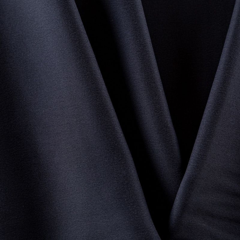 Итальянский натуральный шелковый крепдешин в черном оттенке, фактурный, легкий и струящийся, слегка просвечивает, отлично драпируется, тянется за счет эластана в составе. Идеально подойдет для пошива платьев и сарафанов расклешенных моделей, с воланами, летящих юбок, топов, блузки, юбки, широких брюк, костюма в пижамном стиле.