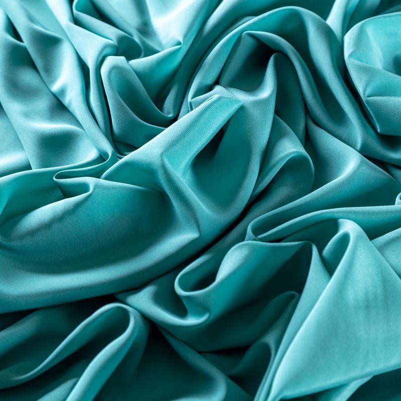 Итальянский натуральный шелковый крепдешин в бирюзовом оттенке, фактурный, легкий и струящийся, слегка просвечивает, отлично драпируется, тянется за счет эластана в составе. Идеально подойдет для пошива платьев и сарафанов расклешенных моделей, с воланами, летящих юбок, топов, блузки, юбки, широких брюк, костюма в пижамном стиле.