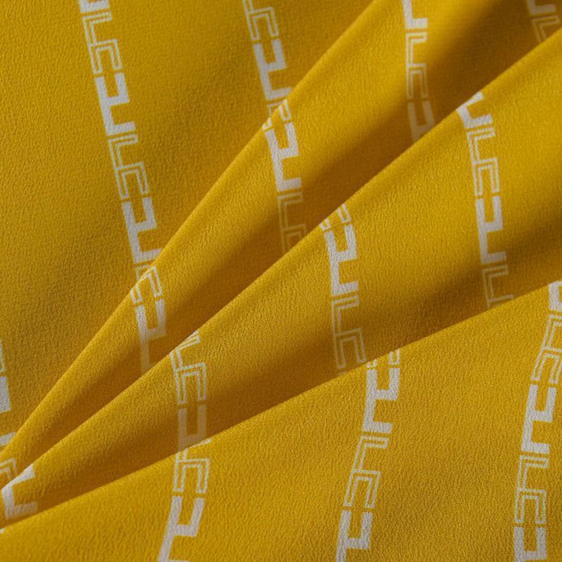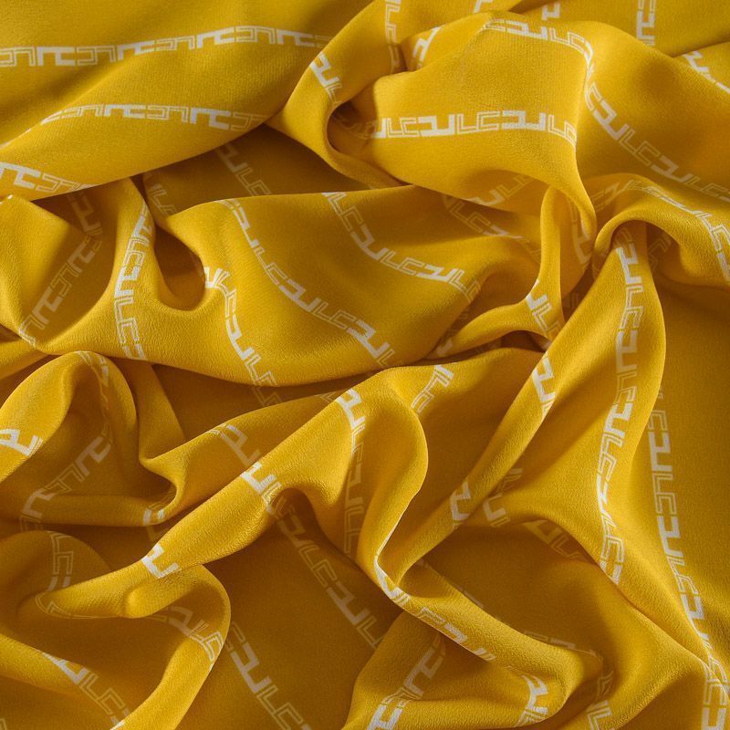 Крепдешин натуральный 028-11942 шафрановый принтованный