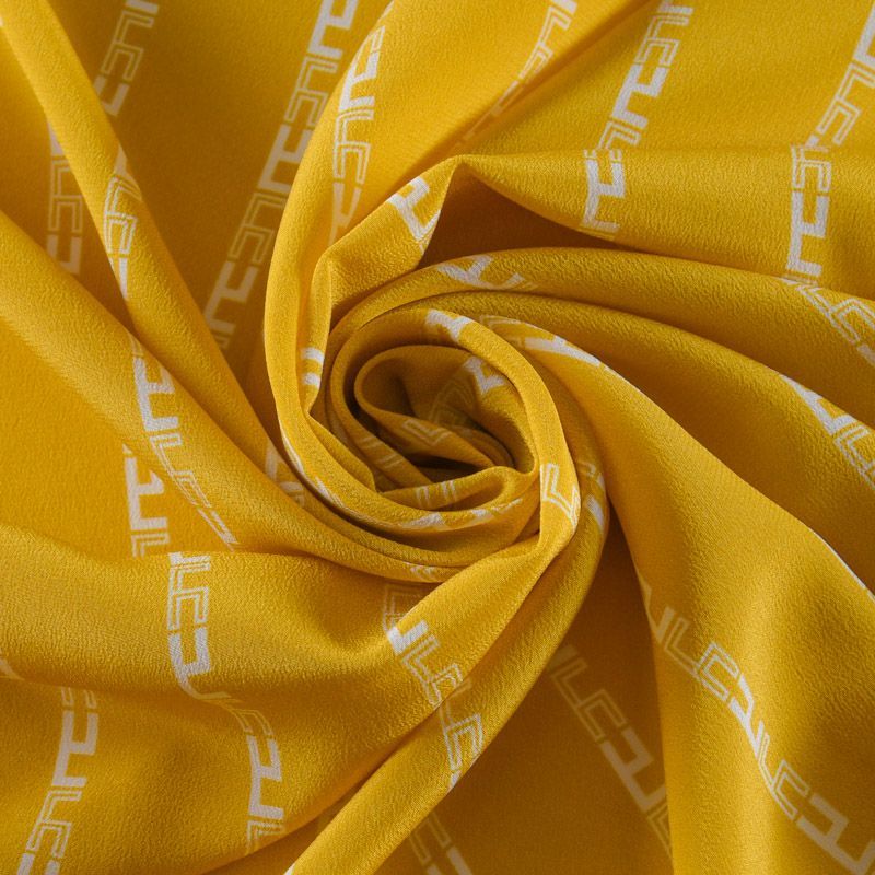 Крепдешин натуральный 028-11942 шафрановый принтованный в Якутске