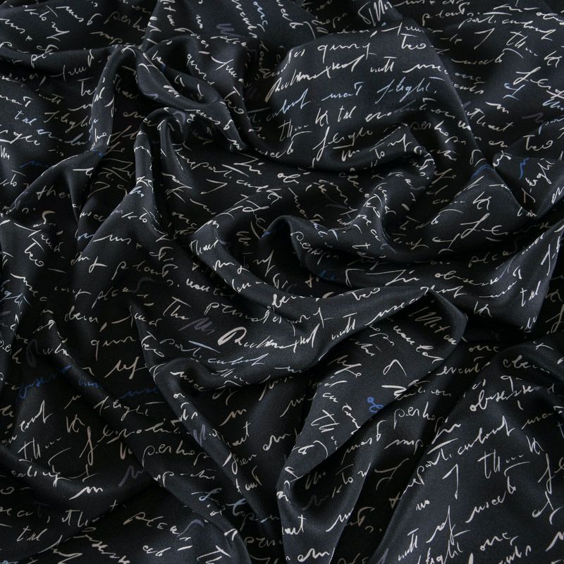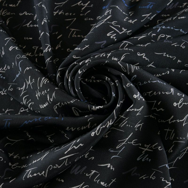 Крепдешин натуральный 028-11954 черный принтованный в Якутске