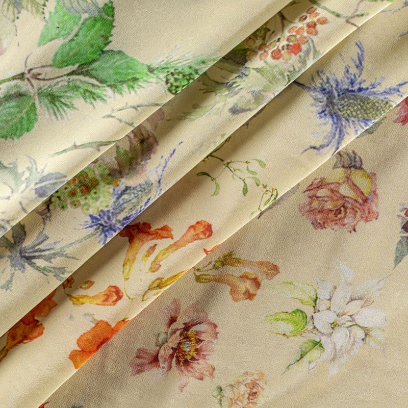 Крепдешин натуральный К01-0016 дынный принтованный в Якутске