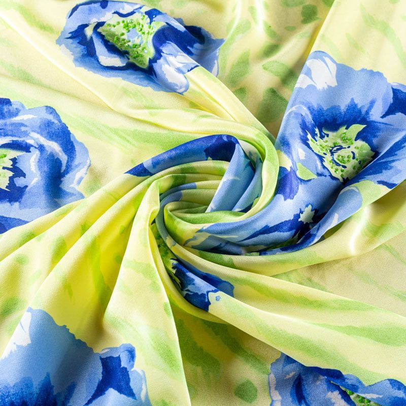 Крепдешин натуральный К01-651 салатовый принтованный в Якутске