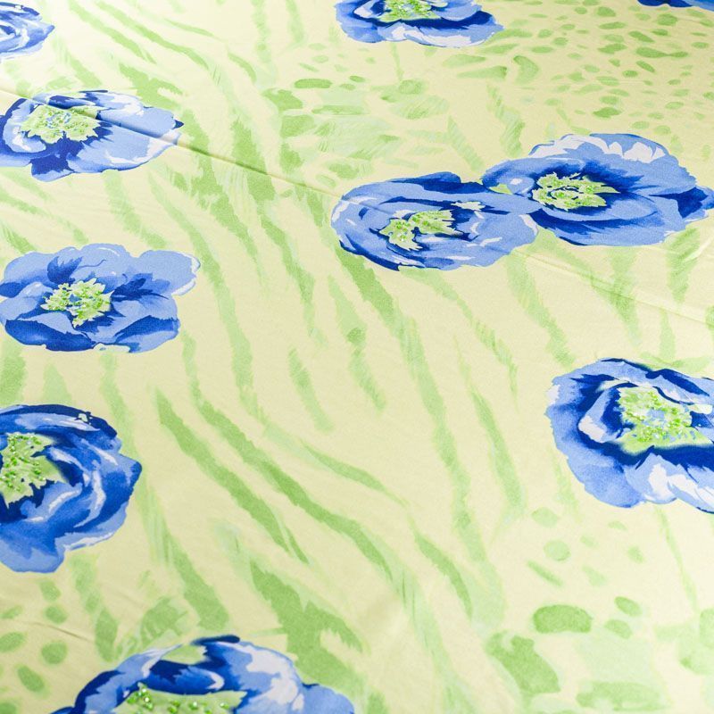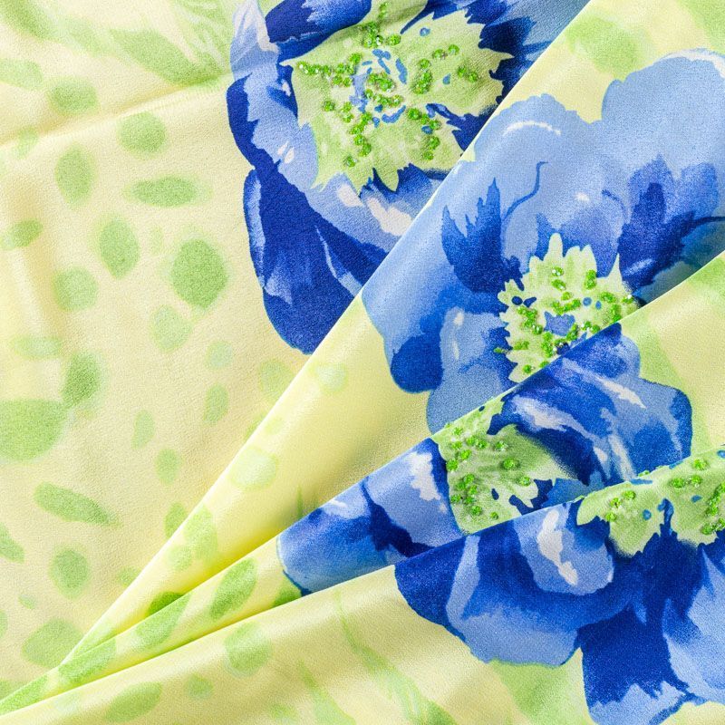 Крепдешин натуральный К01-651 салатовый принтованный