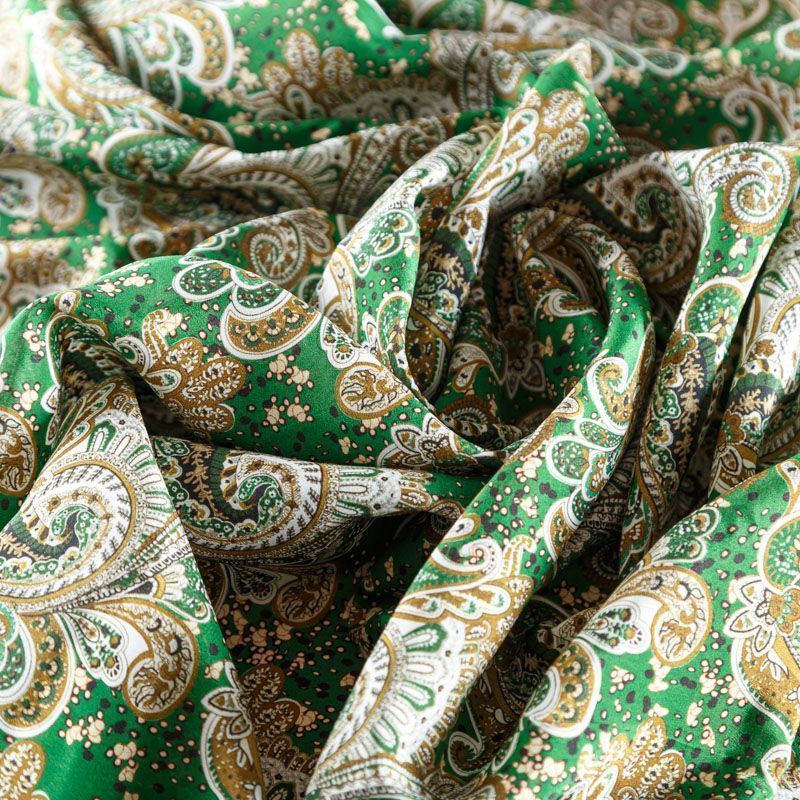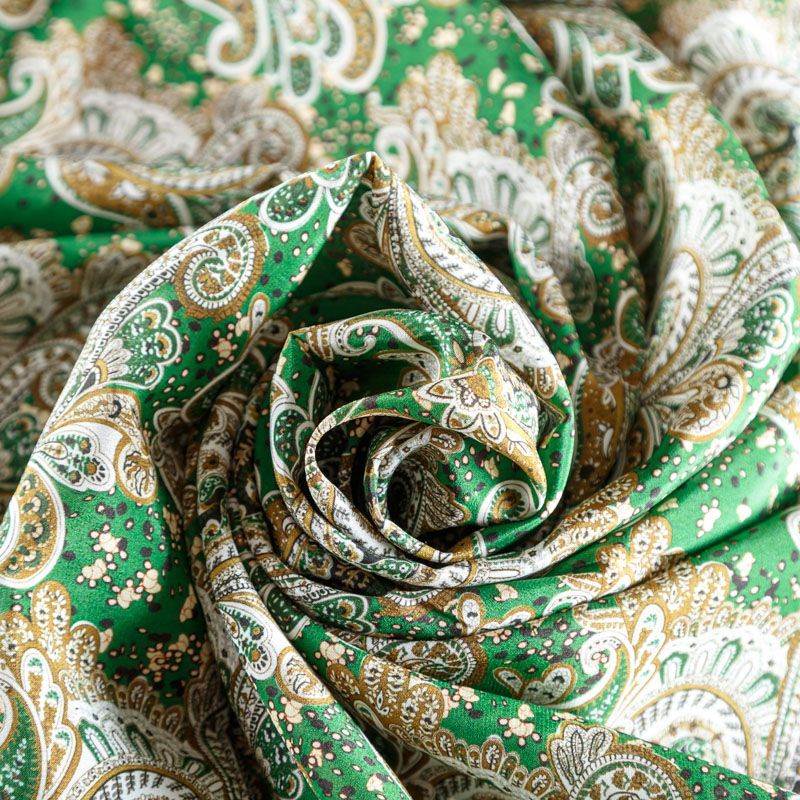 Крепдешин натуральный К24-023 зеленый принтованный в Якутске