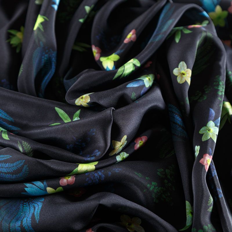 Крепдешин натуральный К24-032 черный принтованный в Якутске