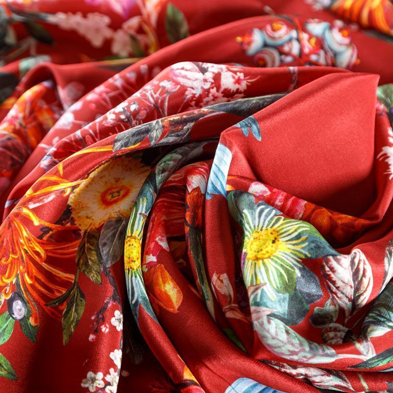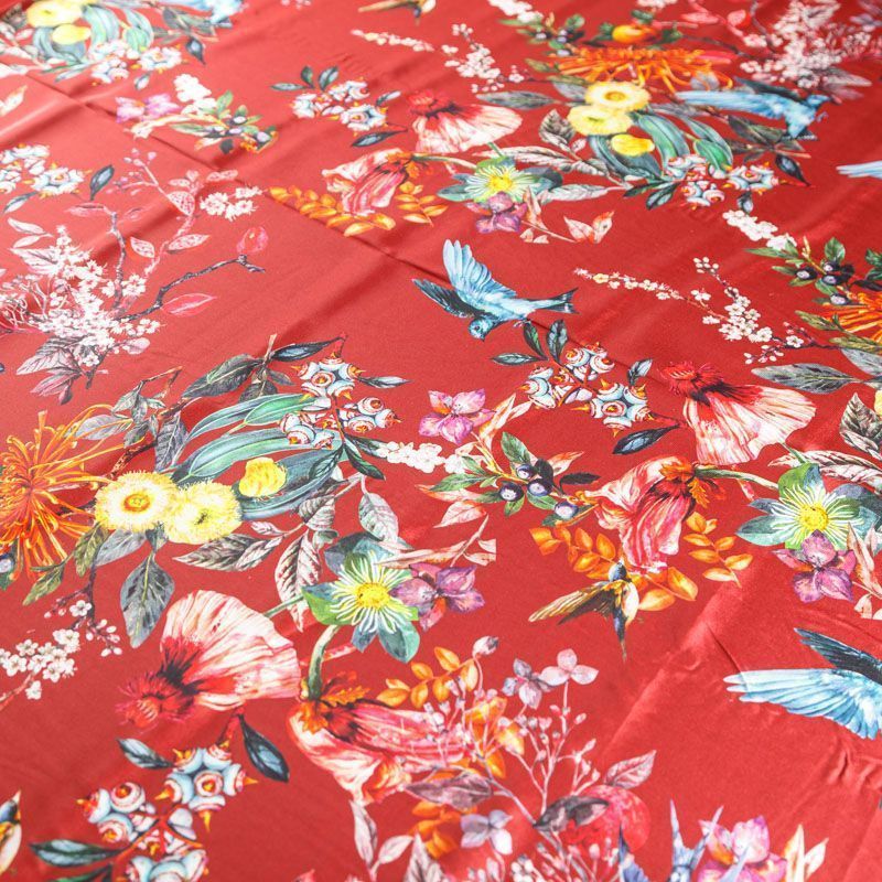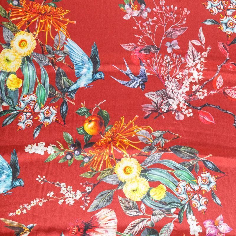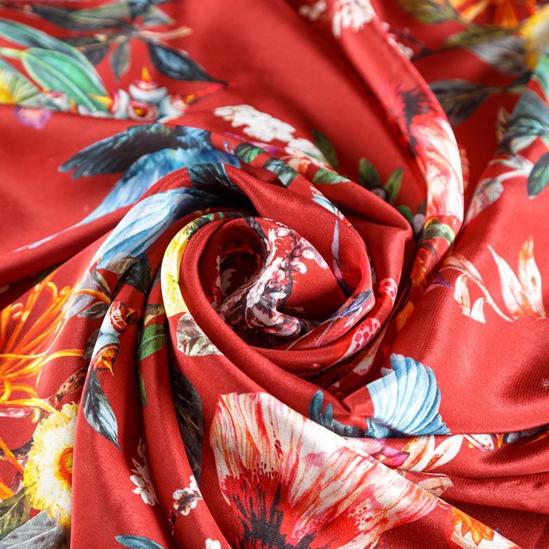 Крепдешин натуральный К24-040 красный принтованный в Якутске