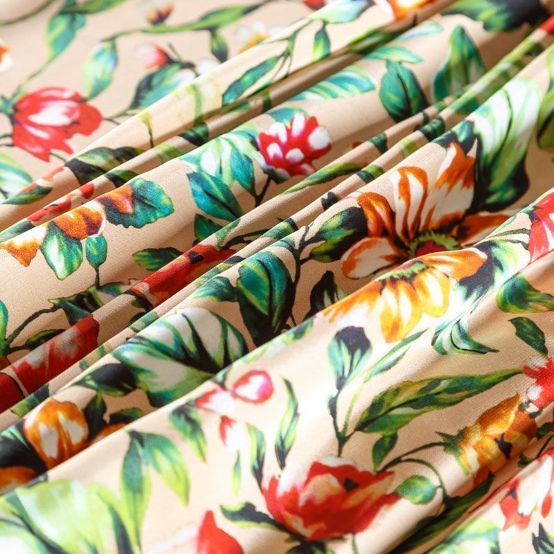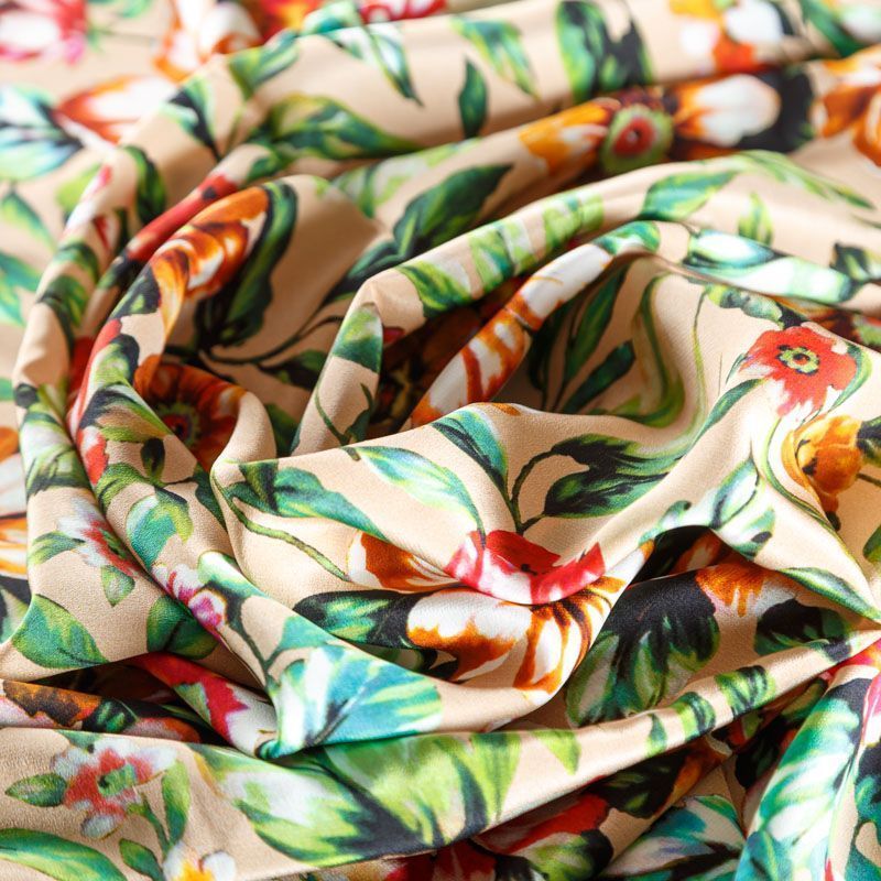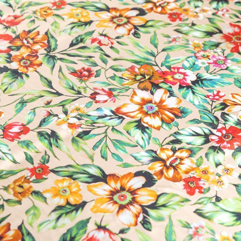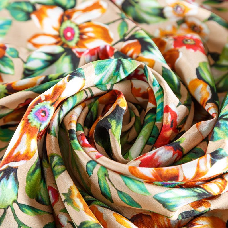 Крепдешин натуральный К27-037 бежевый принтованный в Якутске