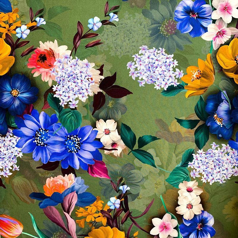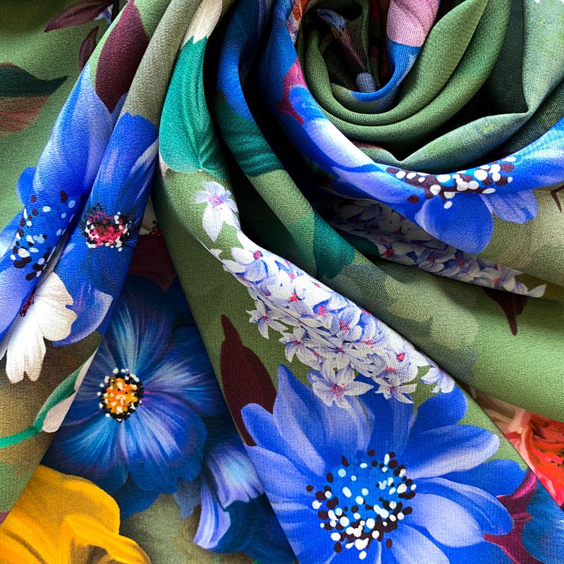 Крепдешин натуральный К32-240 травяная зелень принтованный в Якутске